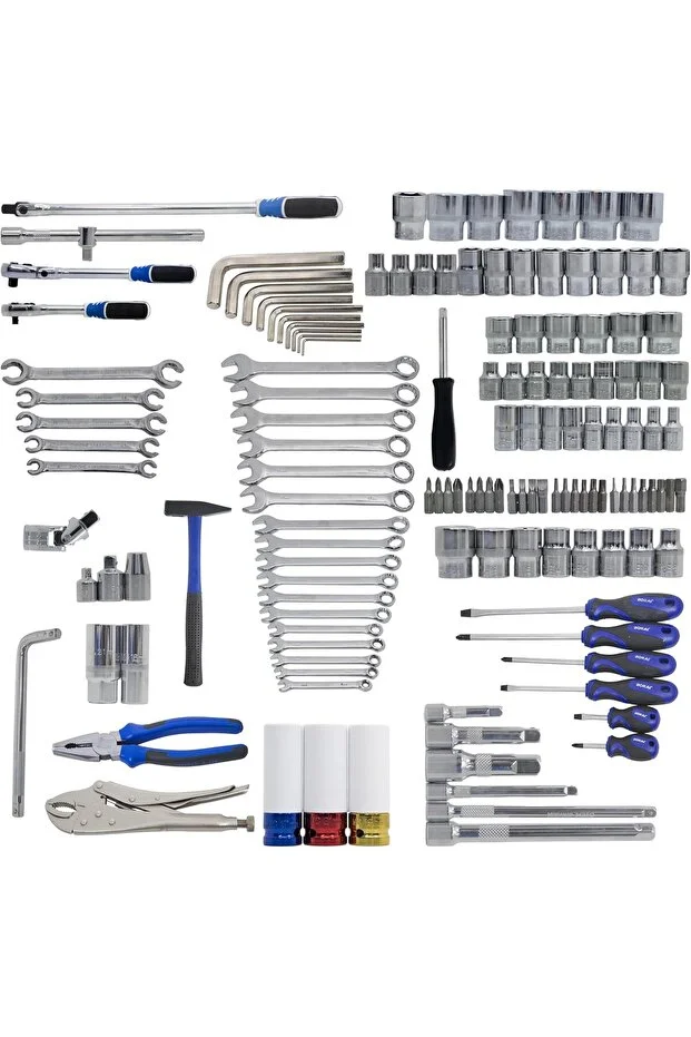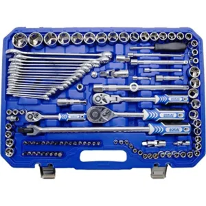 Designed for precision and durability, this comprehensive set includes 1/4, 3/8, and 1/2 inch drive ratchets, deep and standard metric sockets, extensions, adapters, universal joints, and essential hand accessories, delivering reliable performance across multiple applications.