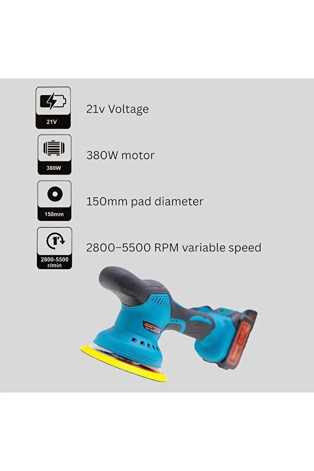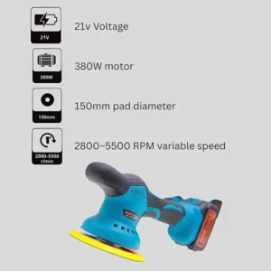 Powered by a robust 380W motor, this electric buffer delivers variable speeds of 2800–5500 RPM, ensuring precise control for tasks such as waxing or paint correction.