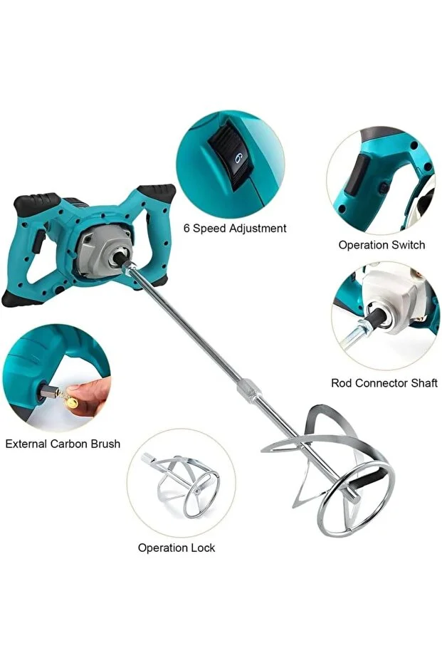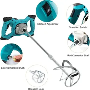 The dual-handle configuration provides excellent control and stability during operation, while the extended mixing shaft ensures thorough blending of materials.