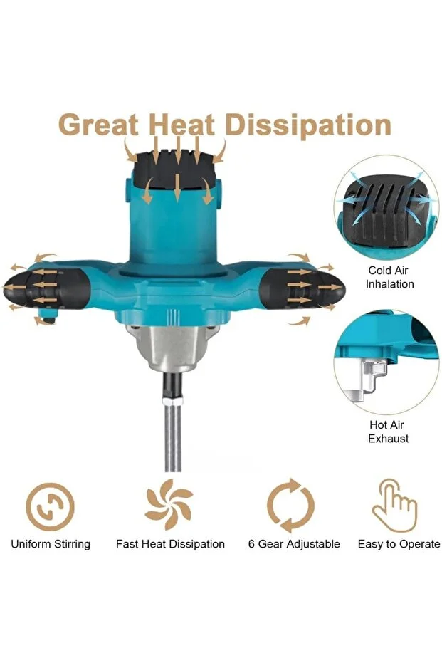 Transform your mixing tasks with this powerful electric mortar mixer featuring a robust teal housing and ergonomic design.