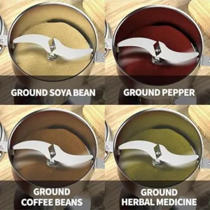 Built with premium stainless steel, this high-speed pulverizer easily grinds spices, herbs, grains, rice, coffee beans, and dry food into a fine, smooth powder within seconds.