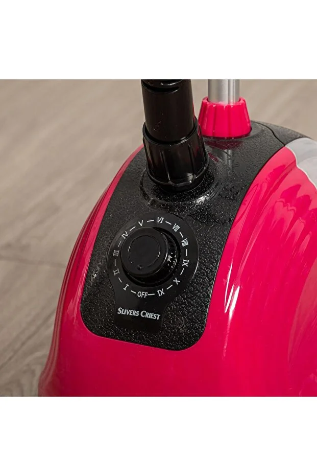 The sleek pink and black design combines style with functionality, whilst the ergonomic grip handle ensures comfortable operation during extended steaming sessions.