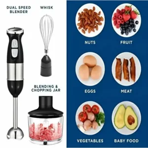 This versatile 4-in-1 hand blender set from Flare Gadgets is your ultimate kitchen companion for effortless food preparation.