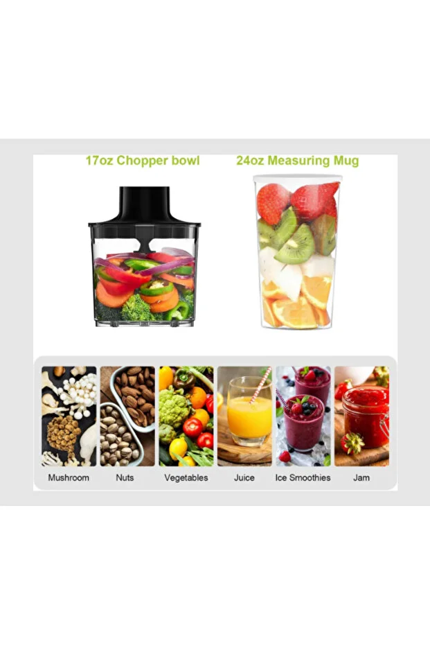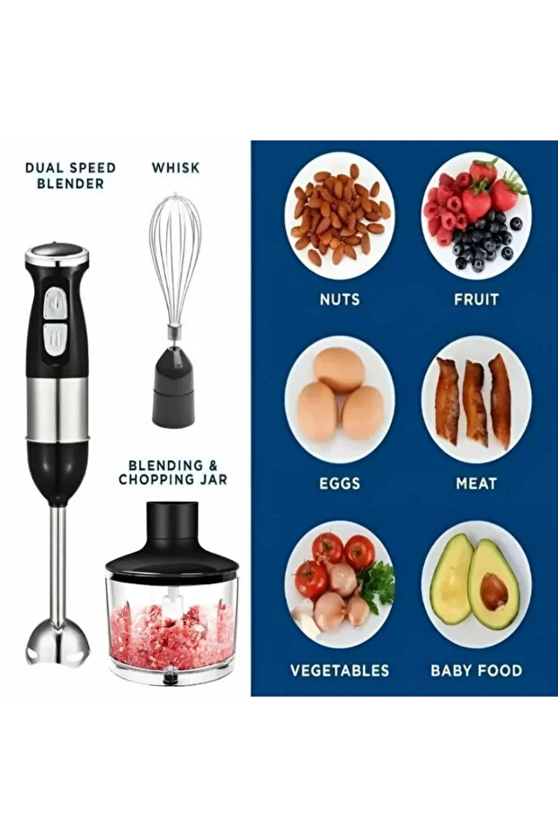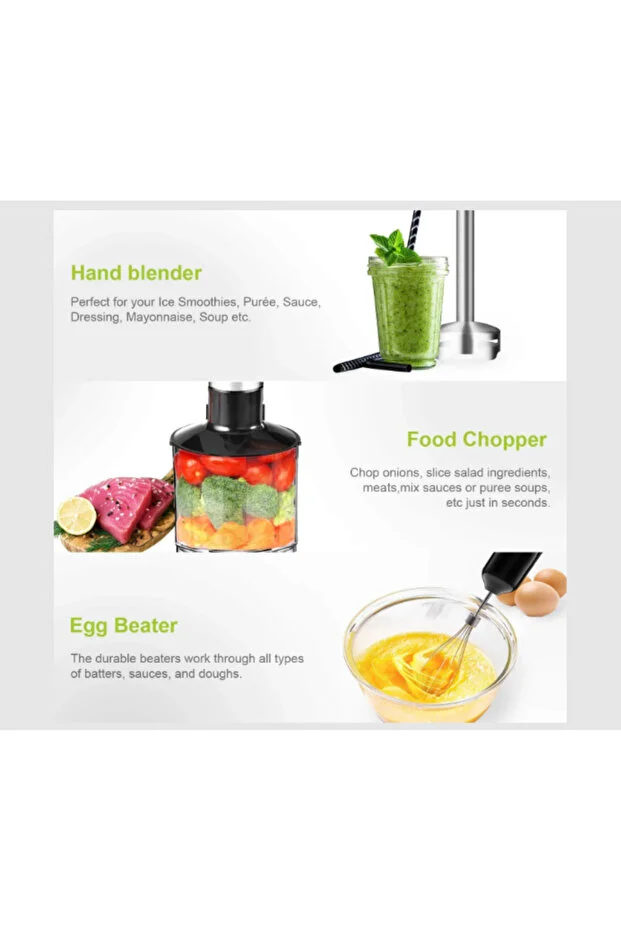 • 4-in-1 Multifunctional Design: The Hand Blender Set is a versatile kitchen essential that combines the functions of a blender, chopper, whisk, and mixer in one convenient device.