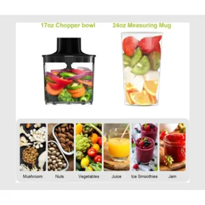 Whether you’re pureeing baby food, chopping onions, whisking eggs, or blending fresh fruit smoothies, this comprehensive set handles multiple kitchen tasks with ease.