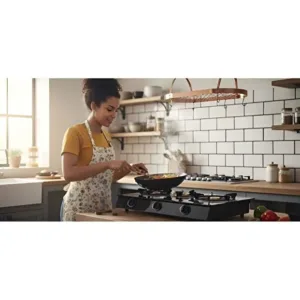 Highlights include a heat-resistant, scratch-proof surface, advanced heat distribution, and battery-free automatic ignition